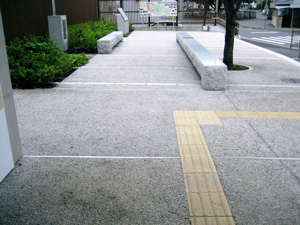 駅の階段や広場の舗装、ベンチ等の外構です。